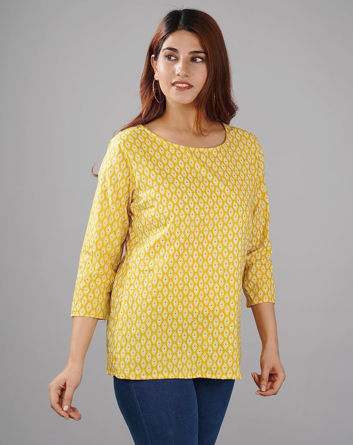 Kyraa Women’s Cotton Top Tunic – Printed Straight Short Kurta | Tunic Top Kurta Design for Ladies, Woman Ethnic Kurtis, Tunic Tops for Jeans, Office Wear Tops Women & Girls
