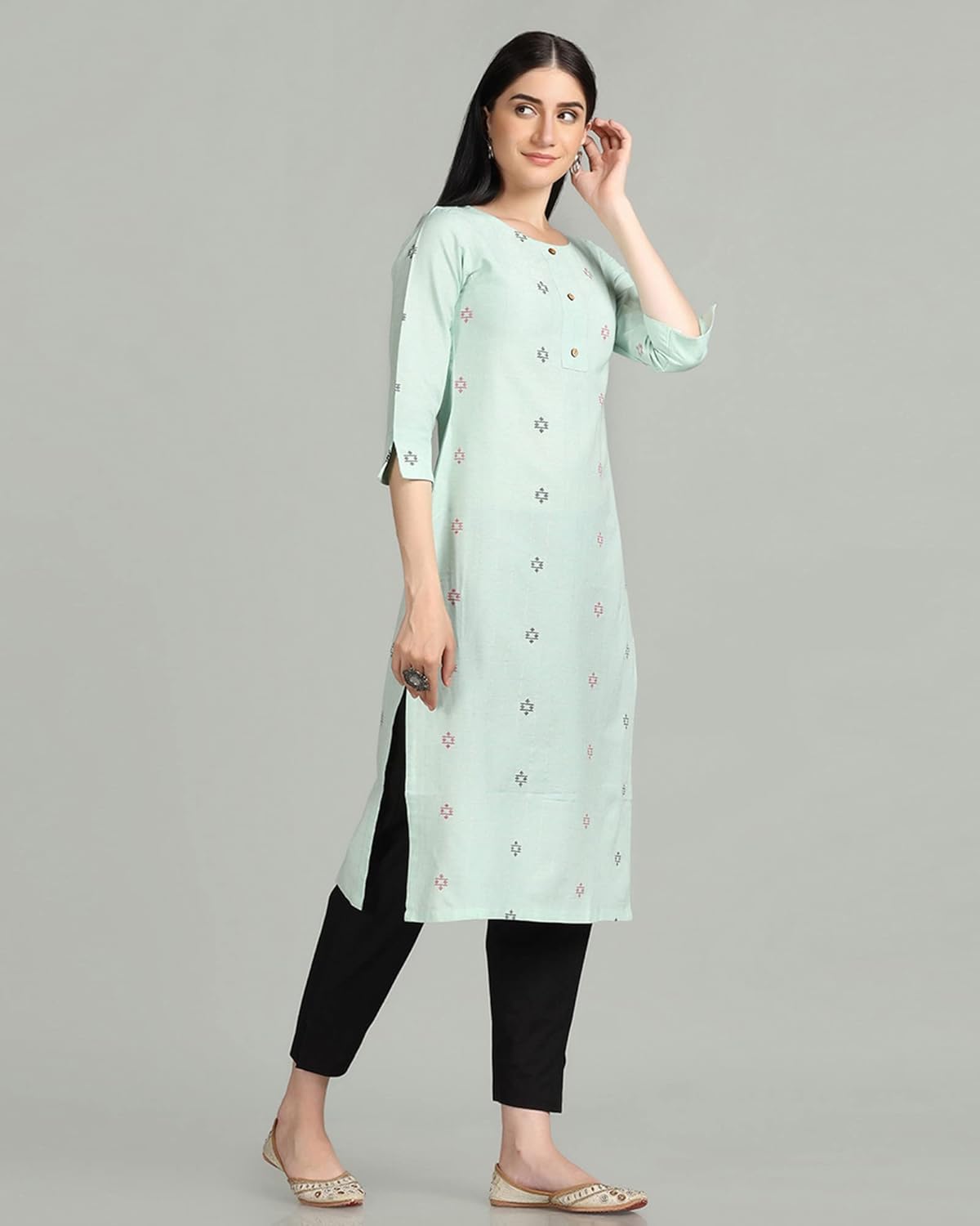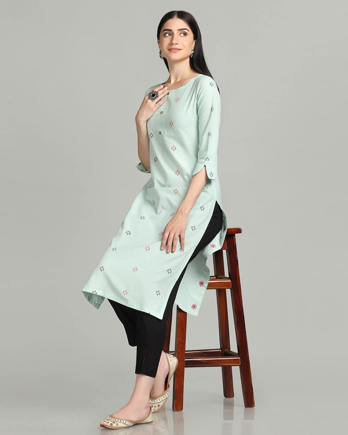 A straight cotton kurti is a type of traditional Indian tunic that is made from cotton fabric and has a straight silhouette. The term “kurti” is used to refer to a tunic or top that is worn by women in South Asia, particularly in India and Pakistan.