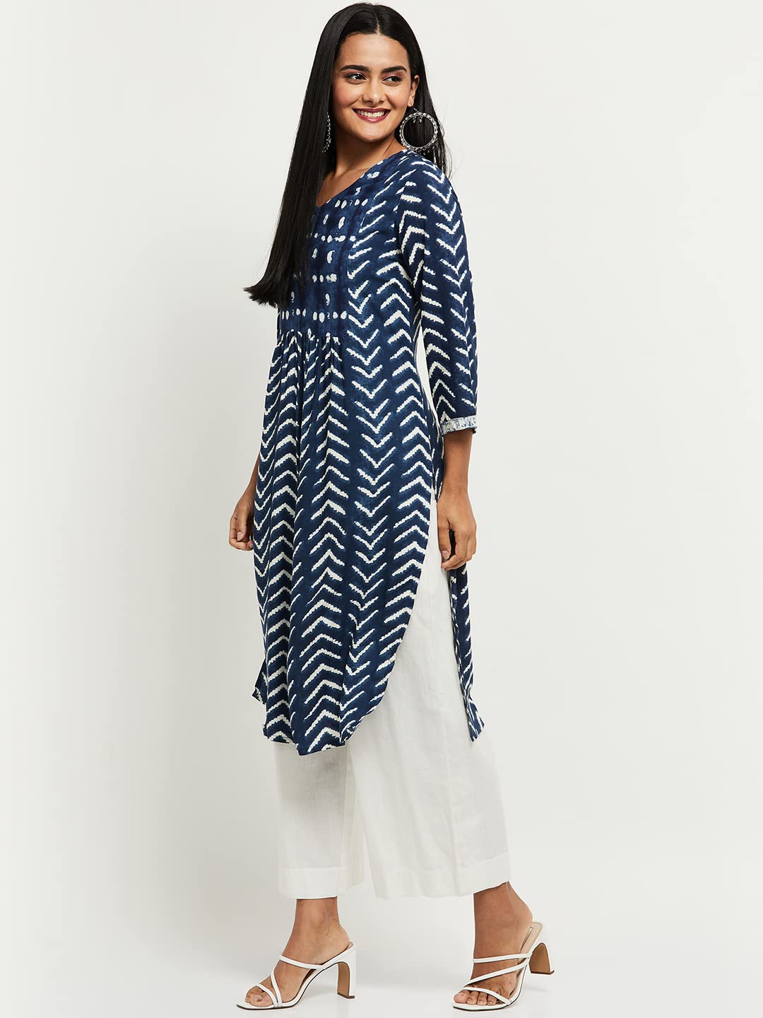 Max Women’s Rayon Straight Fit Straight Regular Printed V-Neck Kurta