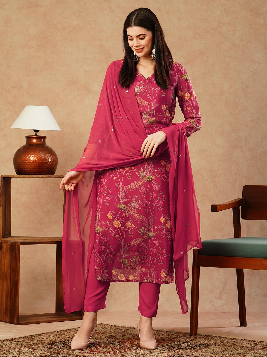 ANNI DESIGNER Women’s Cotton Blend Printed Straight Kurta with Pant & Dupatta