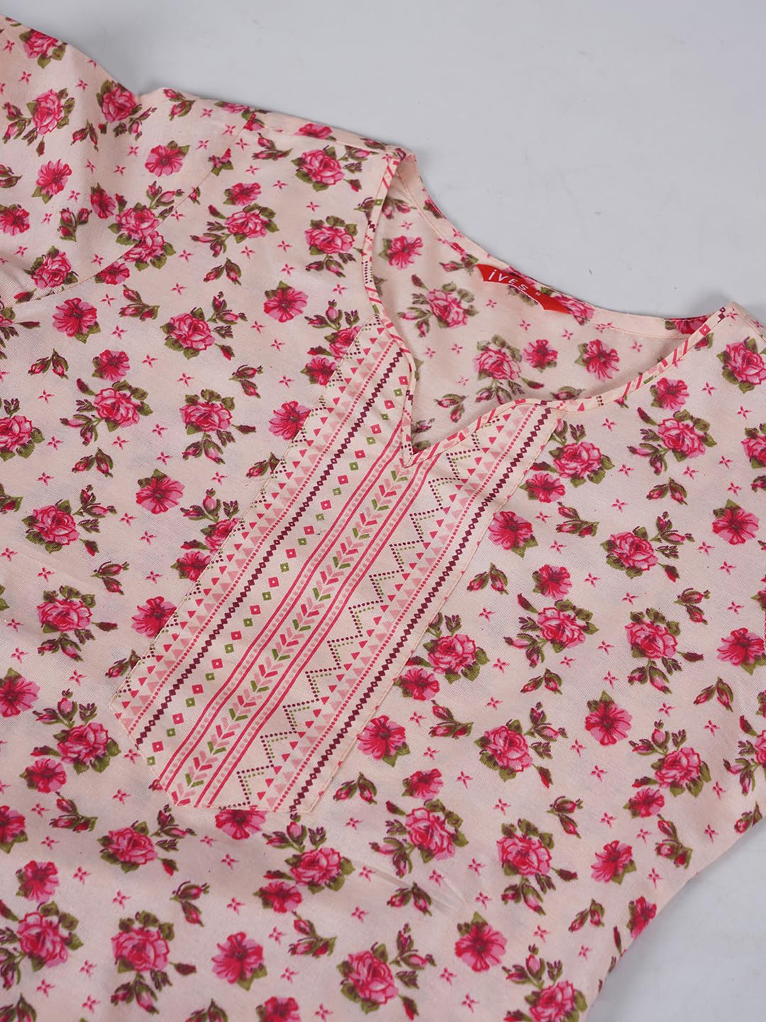 IVES Women’s & Girl’s Casual V – Neck Floral Cotton Straight Kurta Set 3/4 Sleevels- Peach