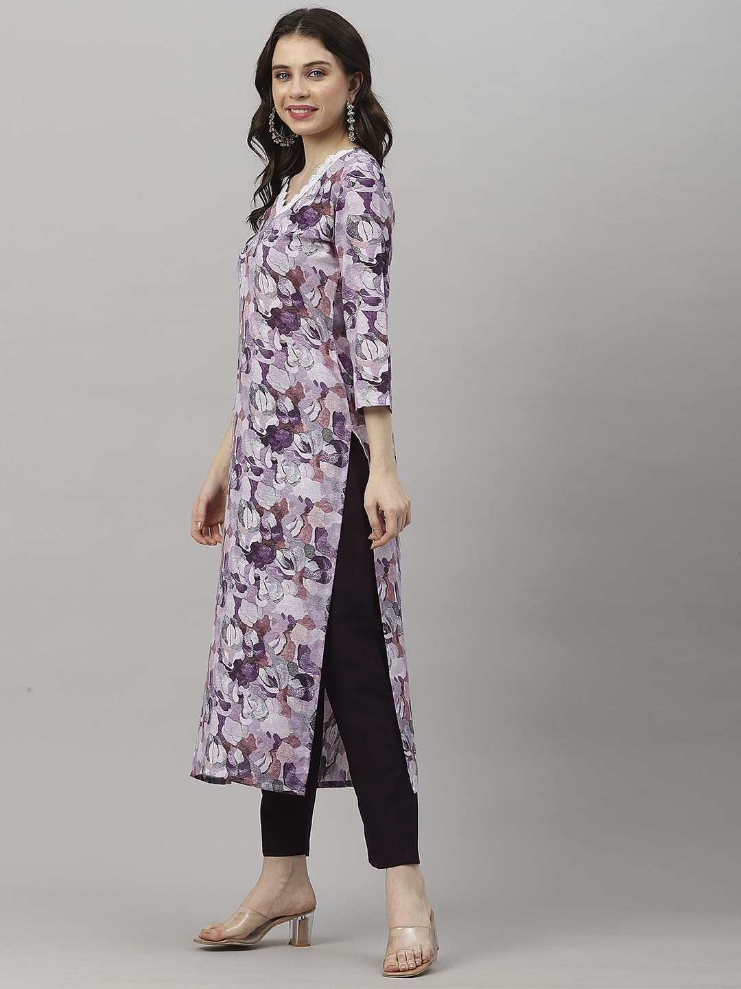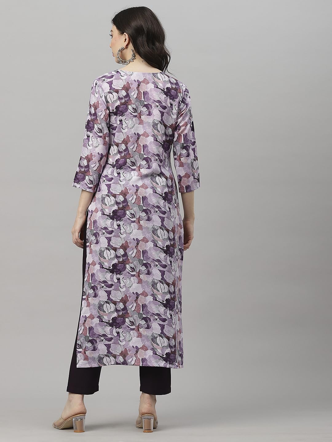 ANNI DESIGNER Women’s Cotton Blend Straight Printed Kurta with Pant (SouthZ Wine_L_Wine_Large)