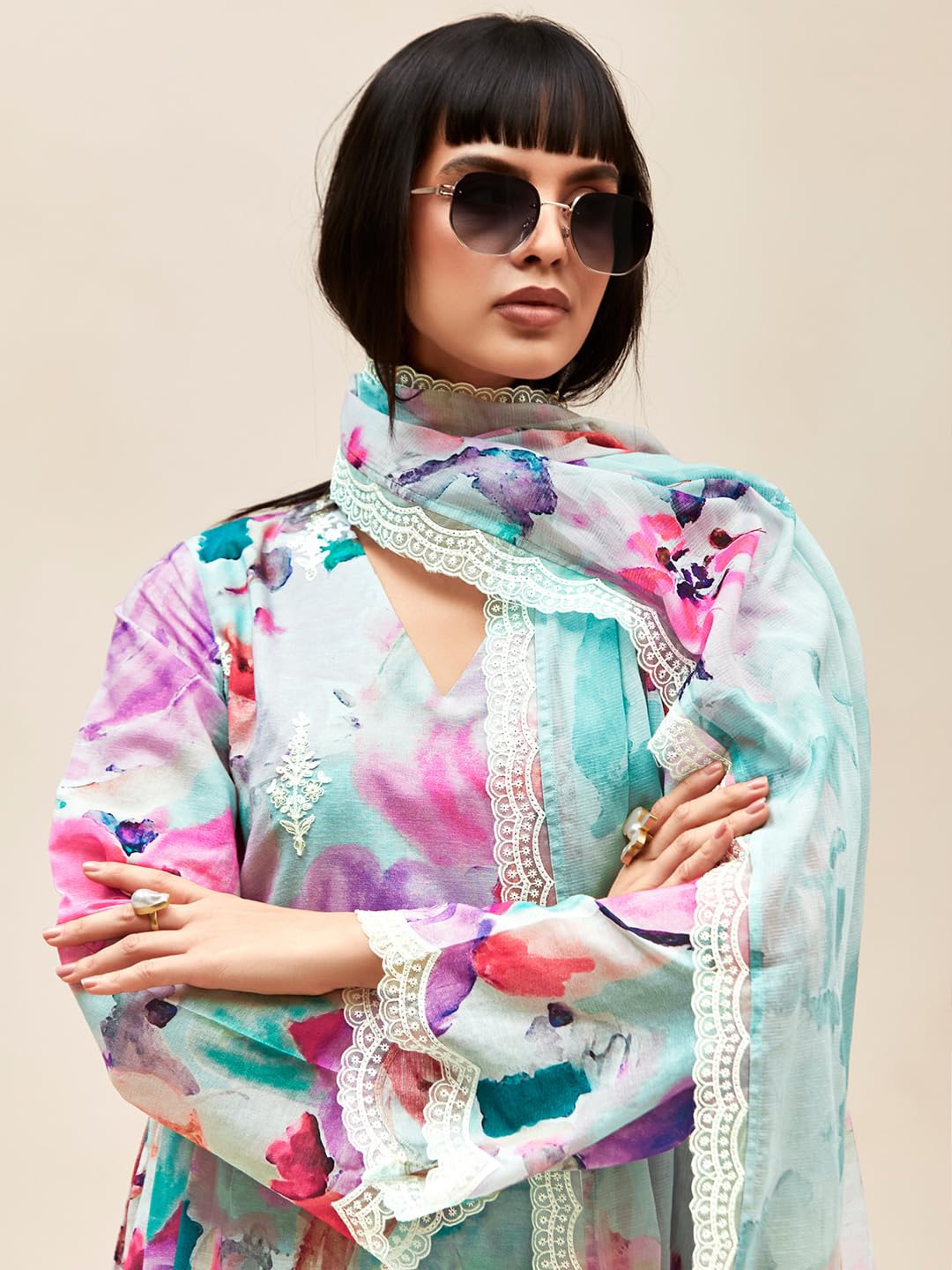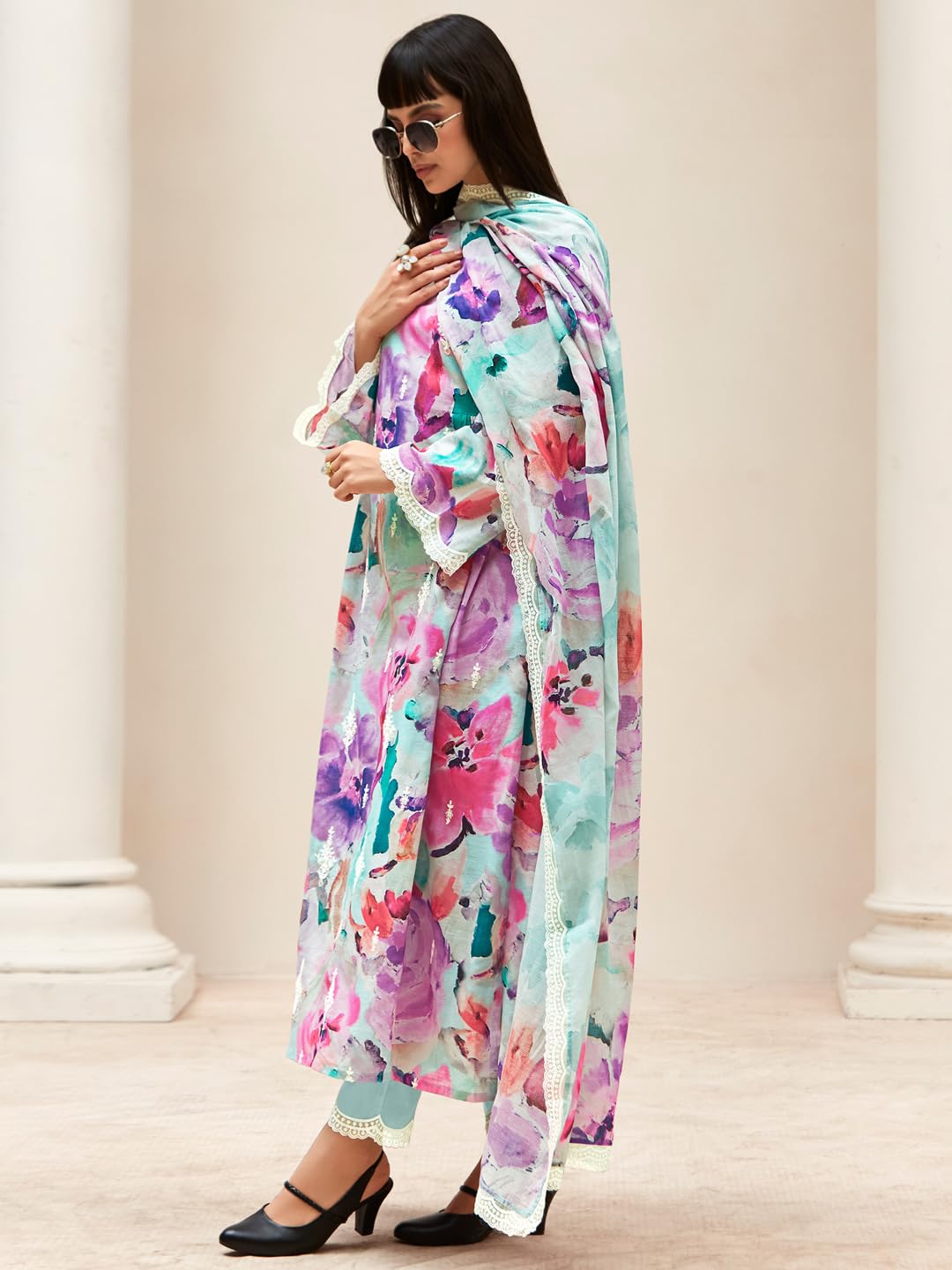 INDO ERA Women’s Cotton Blend Kurta and Pant with Dupatta Set