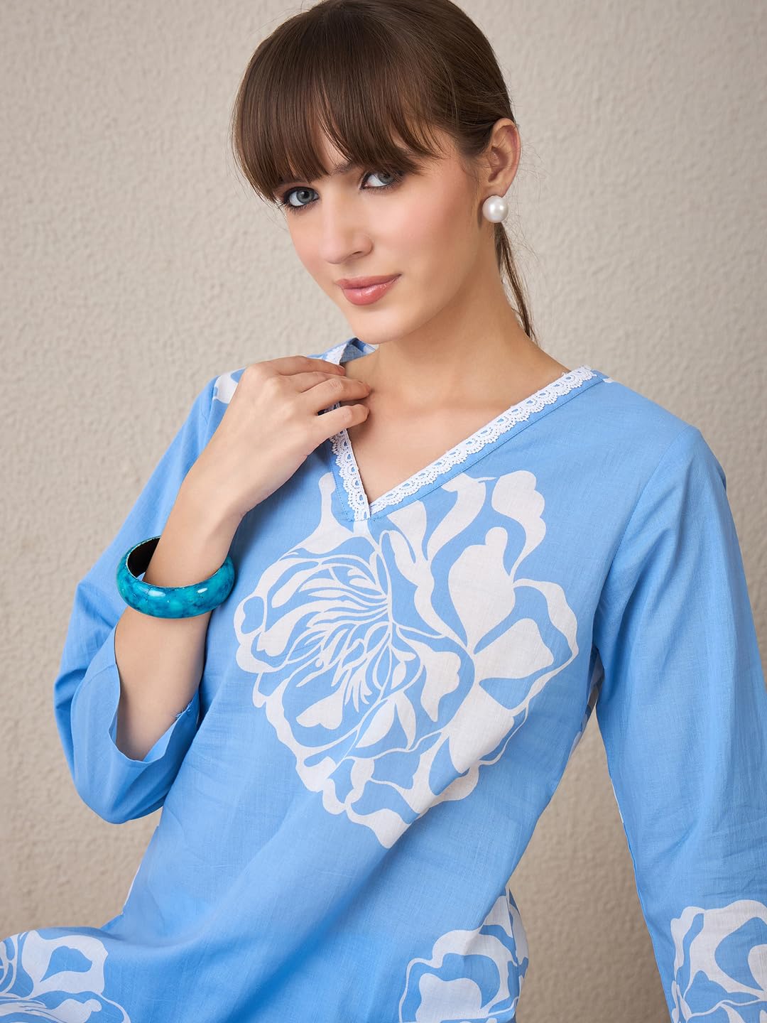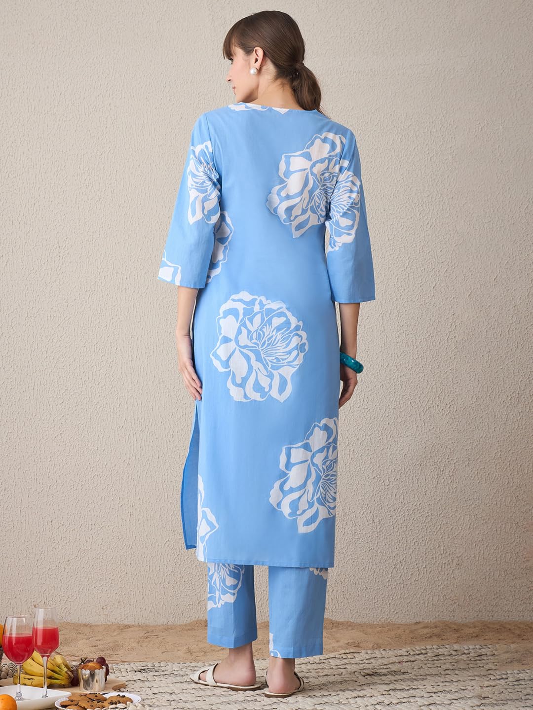 INDO ERA Women’s Straight Pure Cotton Floral Printed Kurta & Pant Set (IESTR10336)