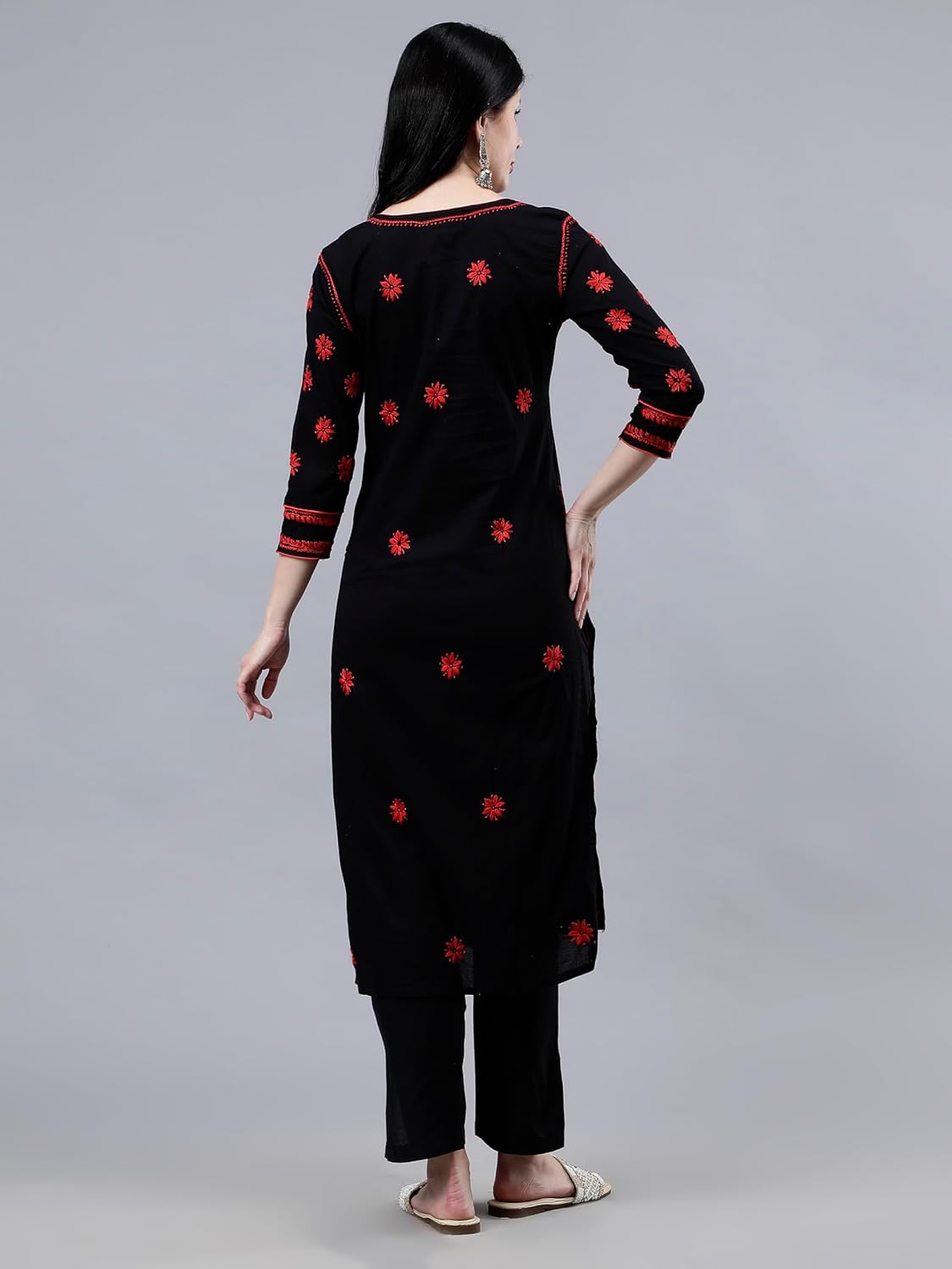 Seva Chikan Hand Embroidered Lucknowi Chikankari Cotton Straight Kurta Kurti for Women SCL4556