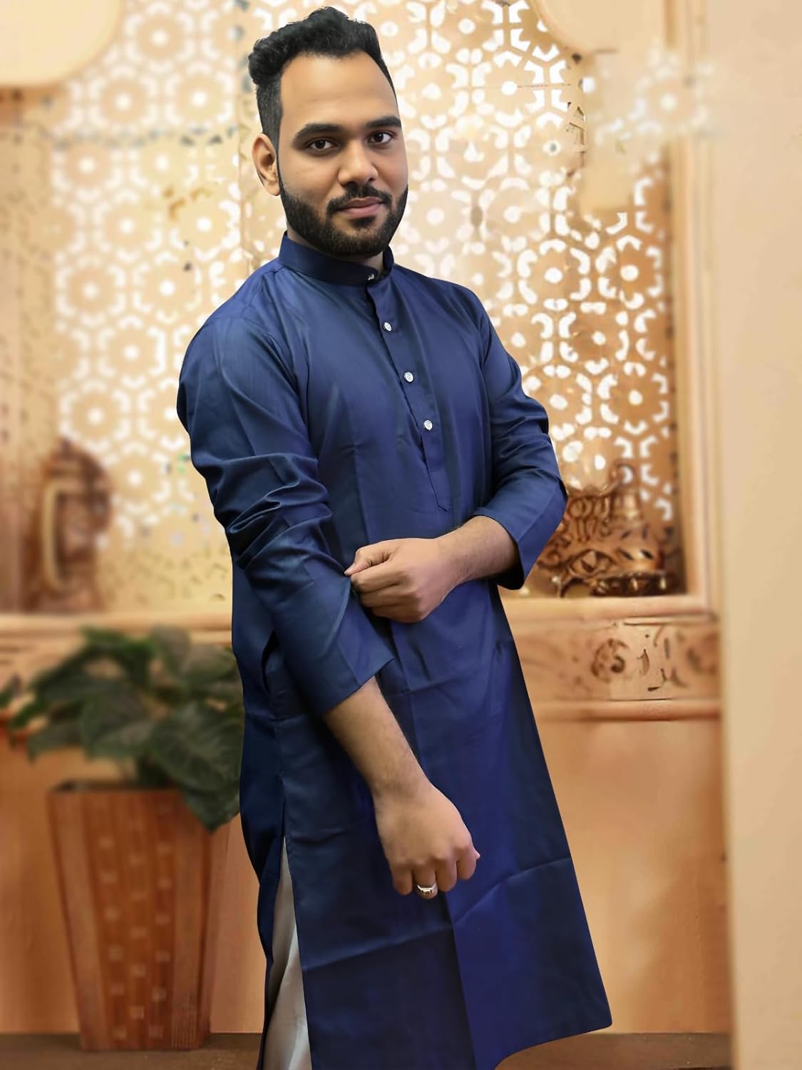 Magic Hub Men’s Solid Cotton Kurta Only Traditional Designer Casual Online Long Straight Cut Modern Plain Festive Kurta