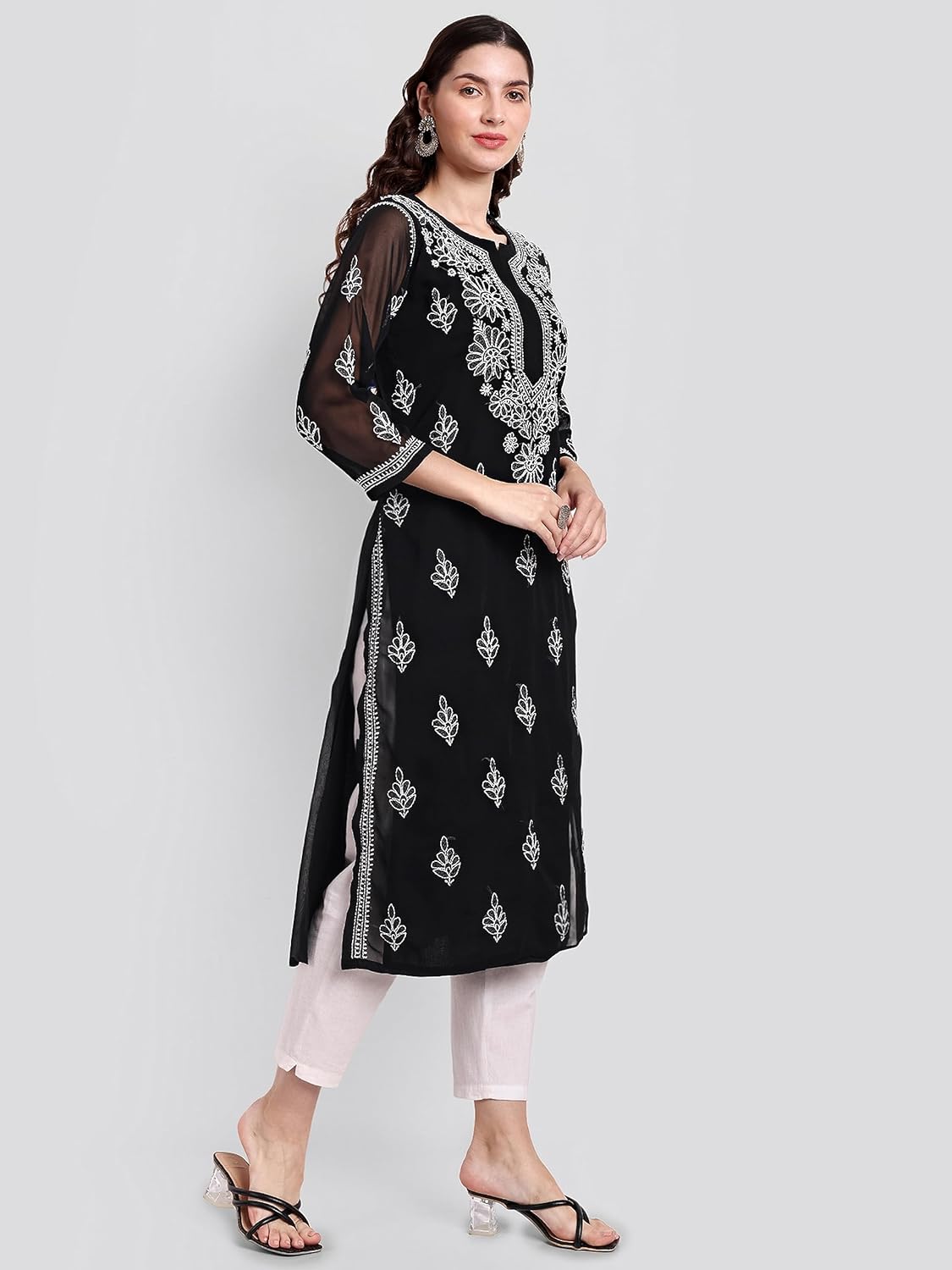 Seva Chikan Hand Embroidered Lucknowi Chikankari Georgette Women Kurta with Cotton Slip SCL4328