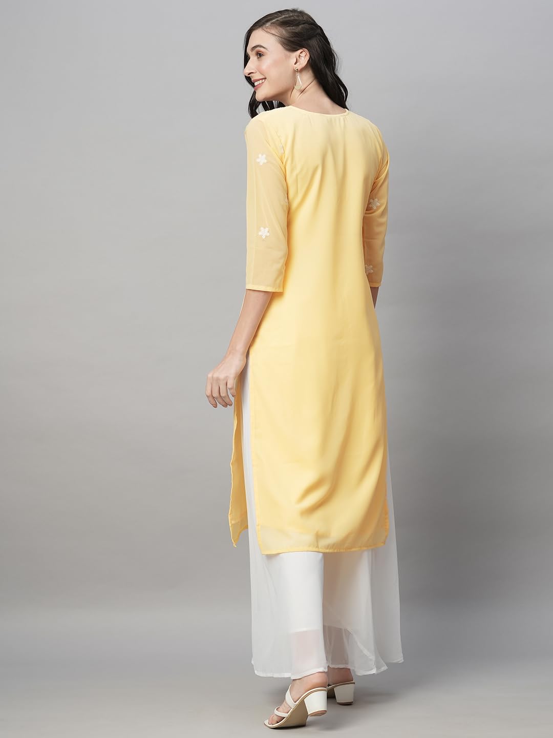RATAN Georgette Straight Lucknowi Chikankari Ethinic Wear Kurta for Women